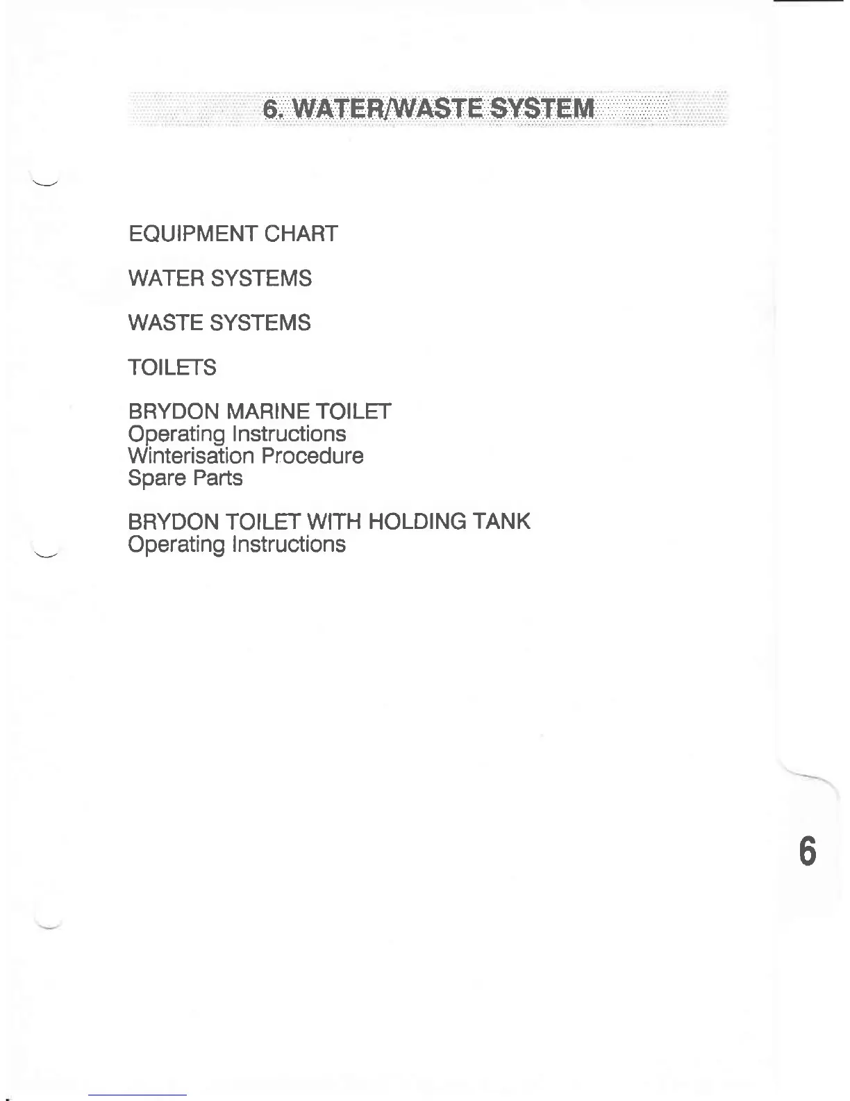 WESTERLY Fulmar 32 - Section 6 - Water;Waste Systems; Toilets