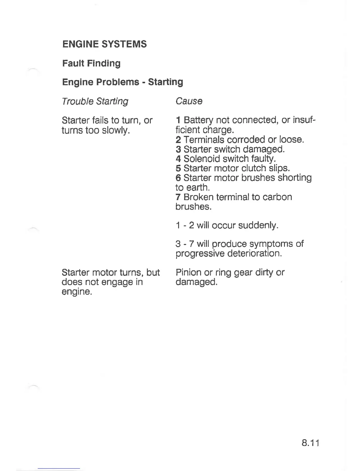 3 Starter switch damaged.