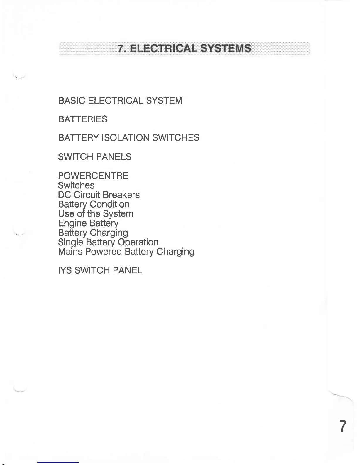 WESTERLY Konsort 29 - 7. Electrical Systems; Basic Electrical System Diagram; Battery Isolation Switch Operation
