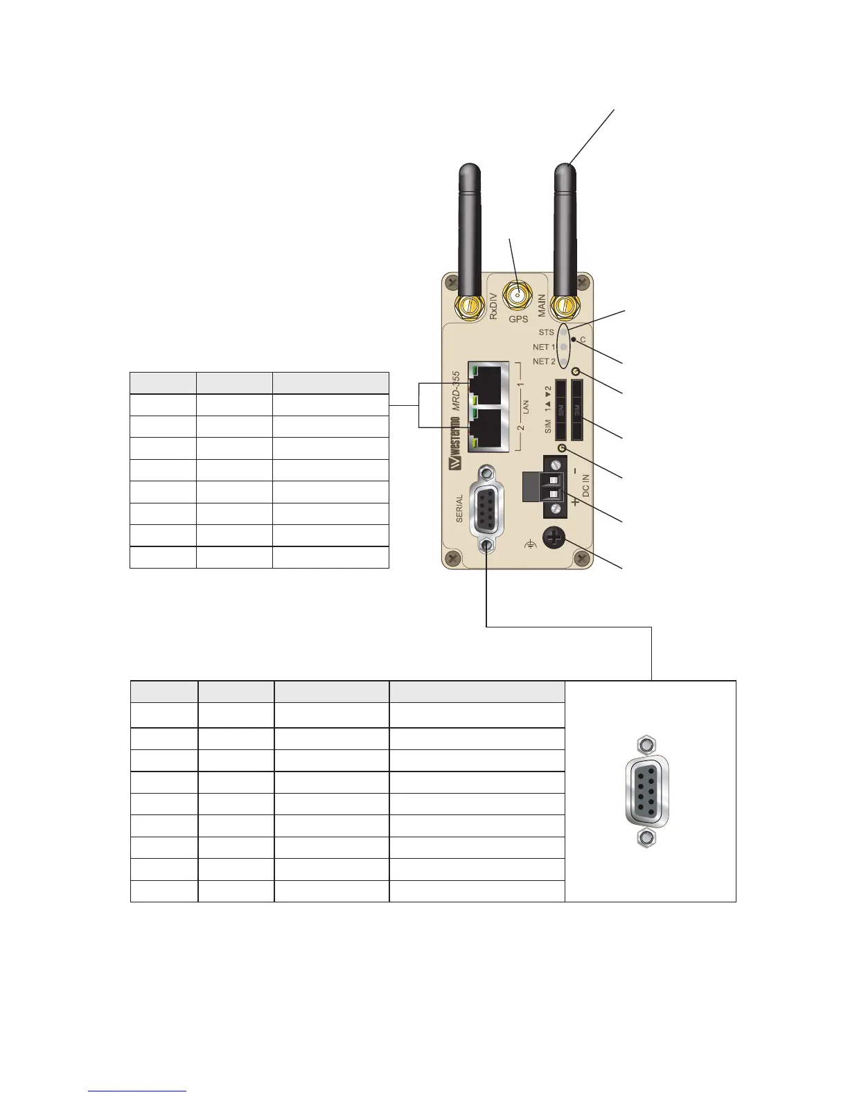 Westermo MRD-315 - Connections MRD-355 and MRD-455; Ethernet TX Connections; Serial Port Connections