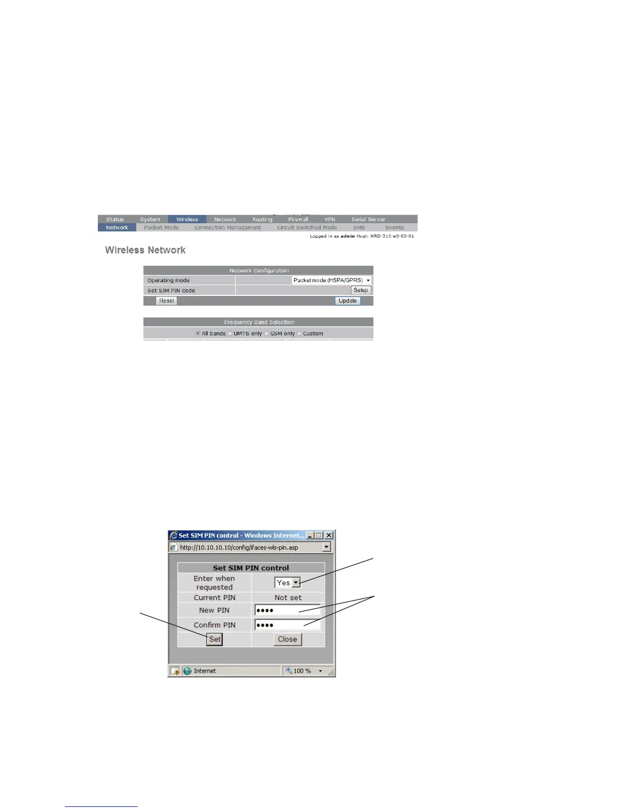 PIN” and ”Confirm PIN” entry boxes. Then click the ”Set” button to save the PIN.