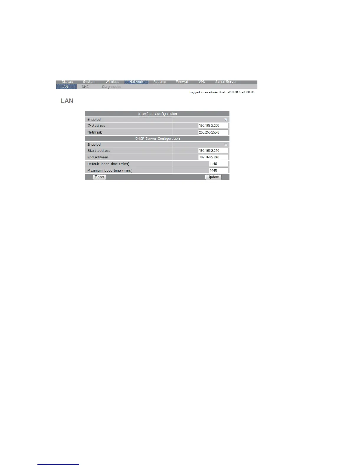 the DHCP can be enabled by setting the Enabled field to Yes and clicking the Update