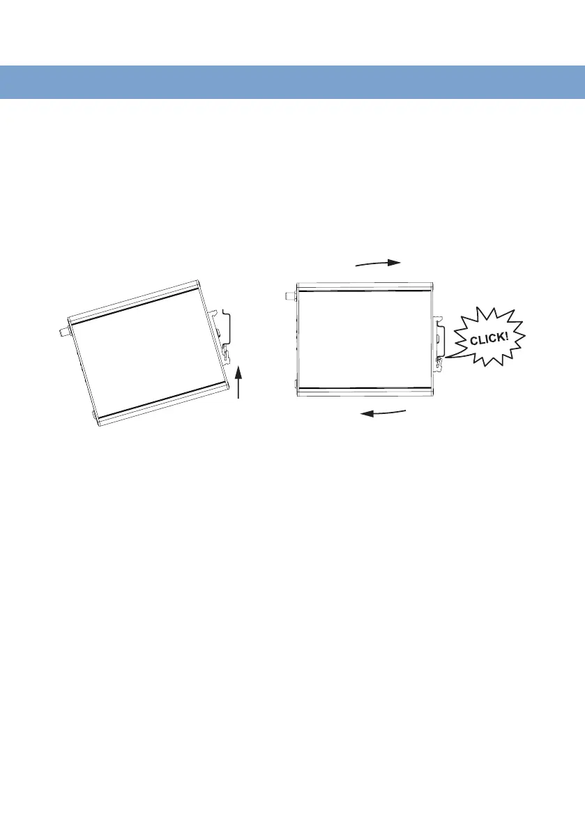 ground. Snap on the product to the DIN-rail according to the figure.