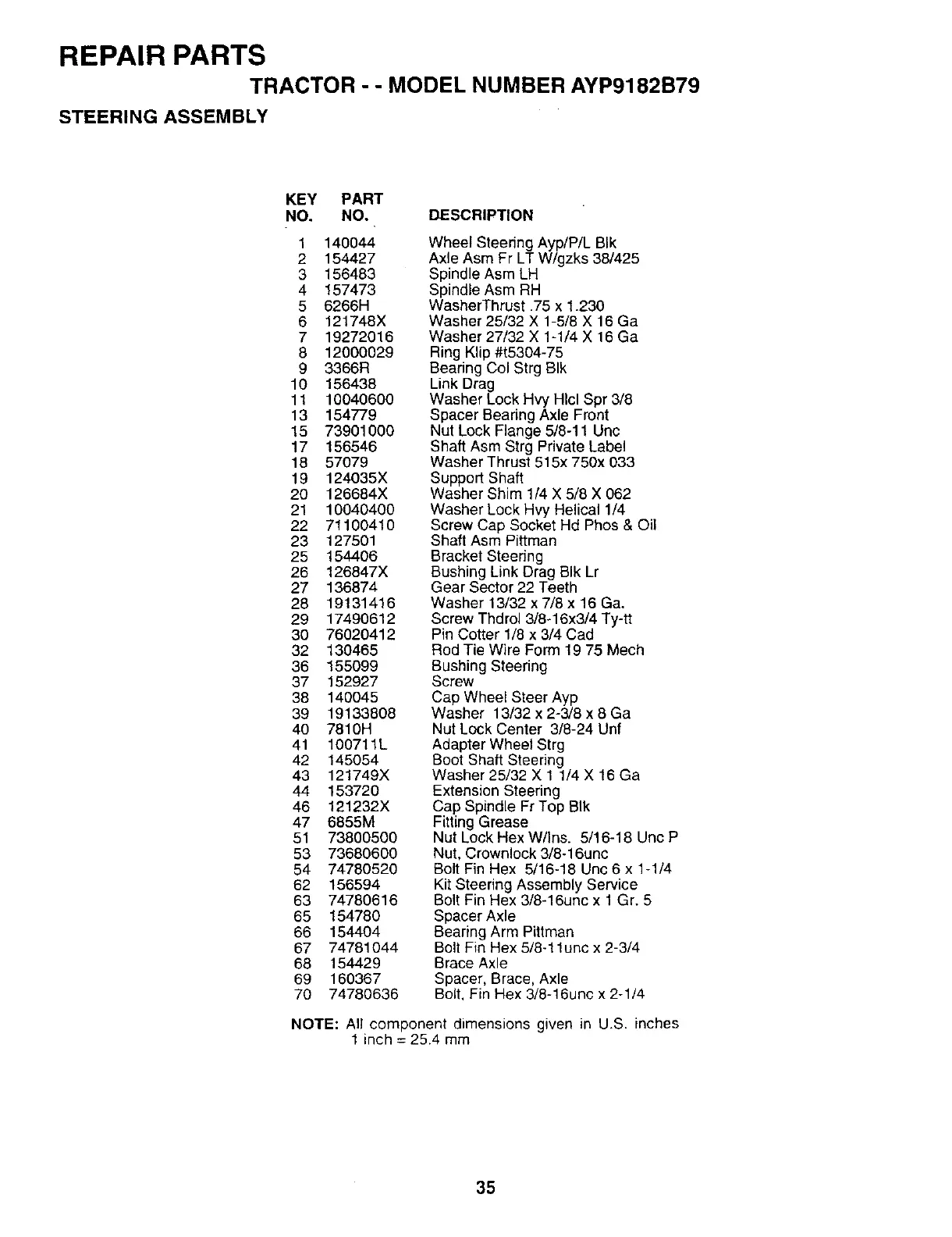 TRACTOR - - MODEL NUMBER AYP9182B79