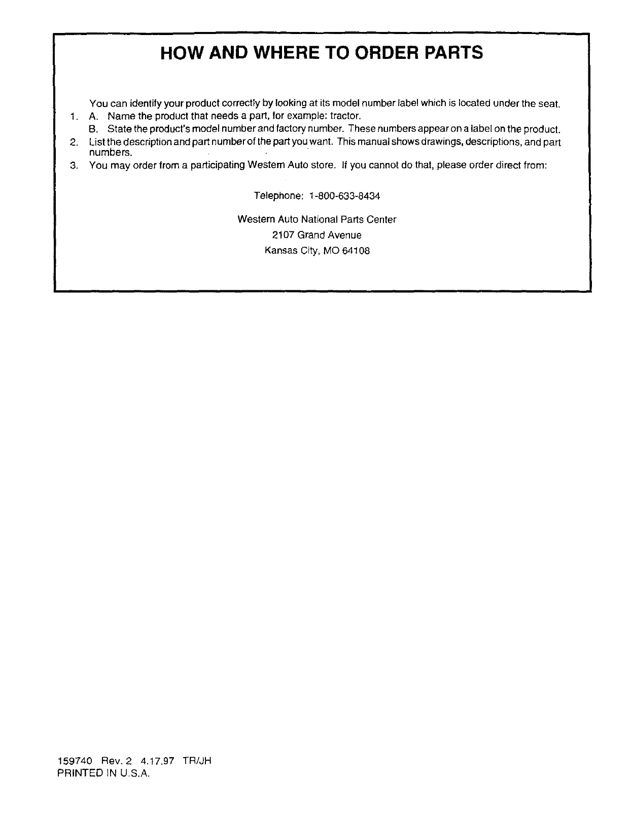 3. You may order from a participating Western Auto store, if you cannot do that, please order direct from: