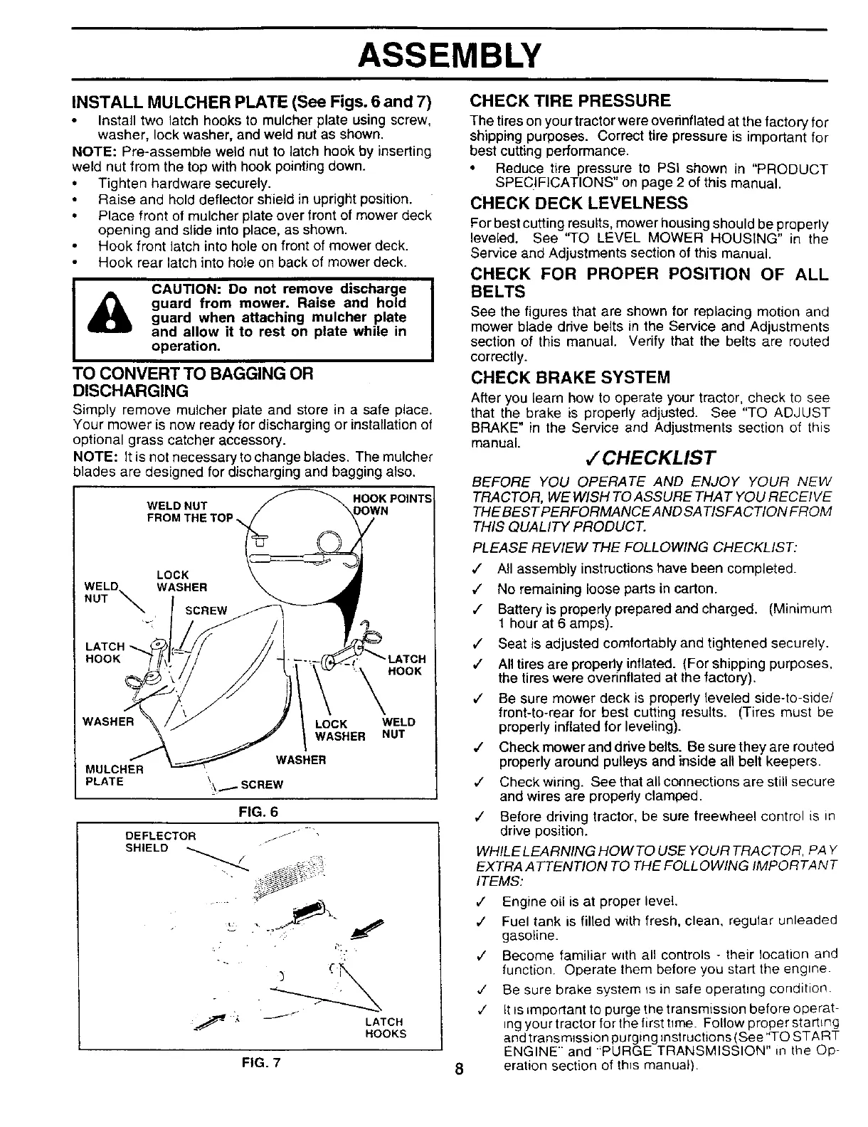 INSTALL MULCHER PLATE (See Figs. 6 and 7)