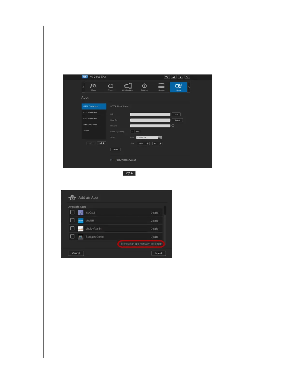 following steps to manually add that app to your WD My Cloud EX2 device.