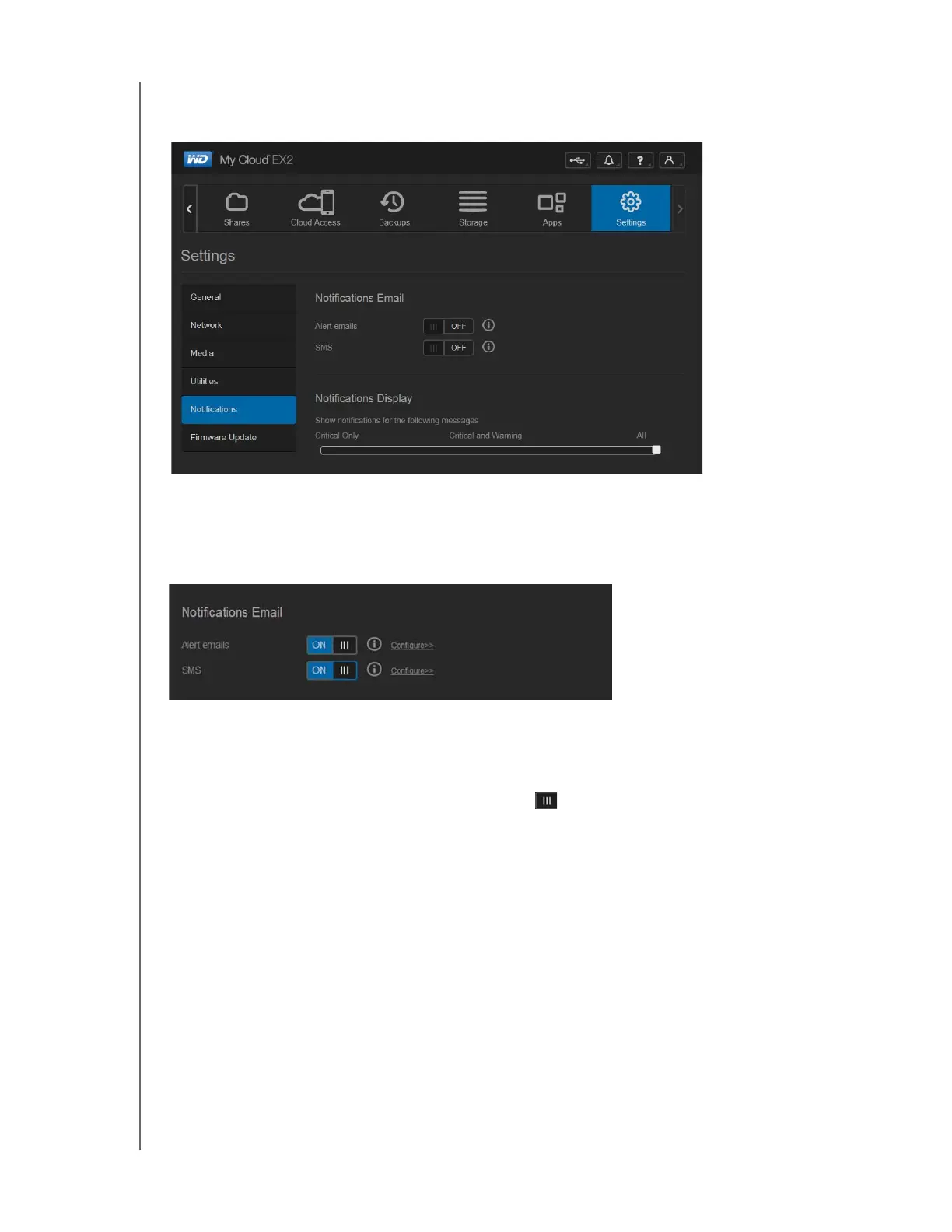 1. On the Navigation bar, click the Settings icon, and then click Notifications on the left