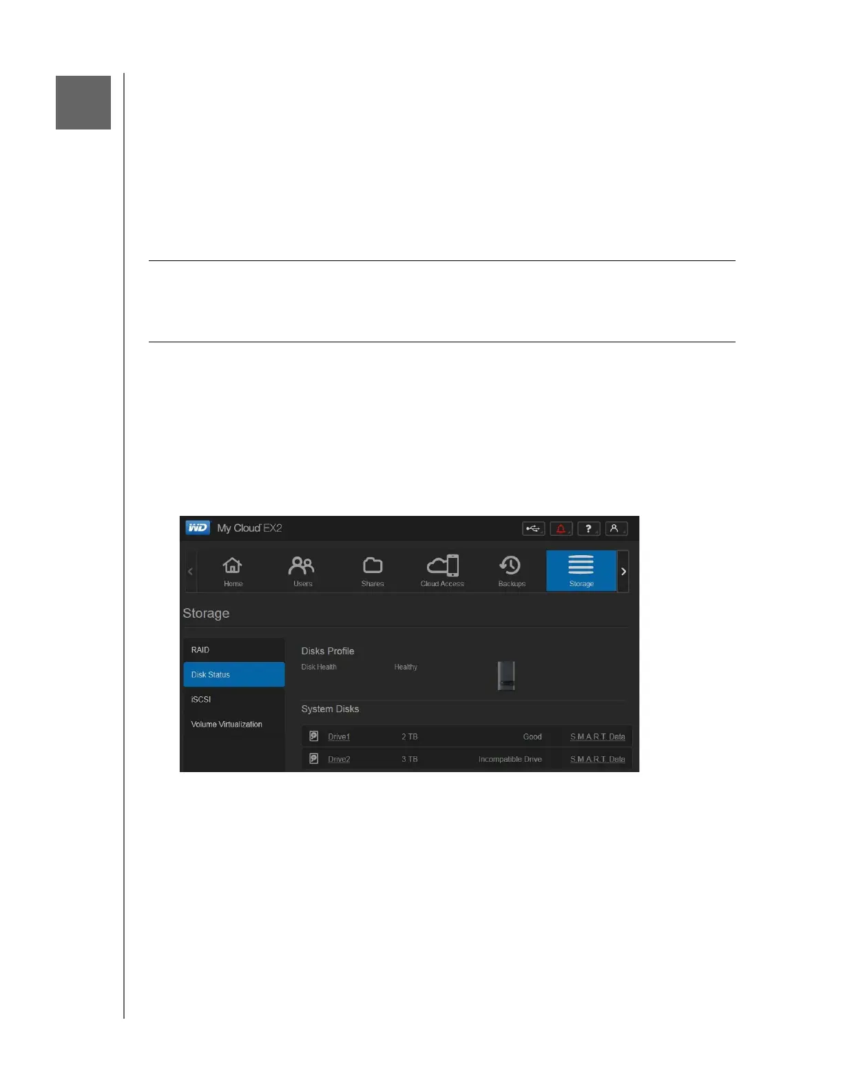 1. On the dashboard’s navigation panel, click Storage, and then click Disk Status.