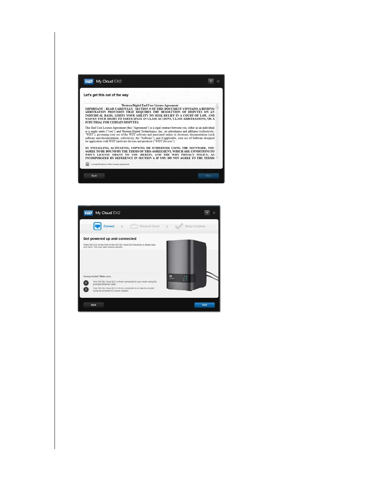 2. Read the Western Digital End User License Agreement that displays, and then select the