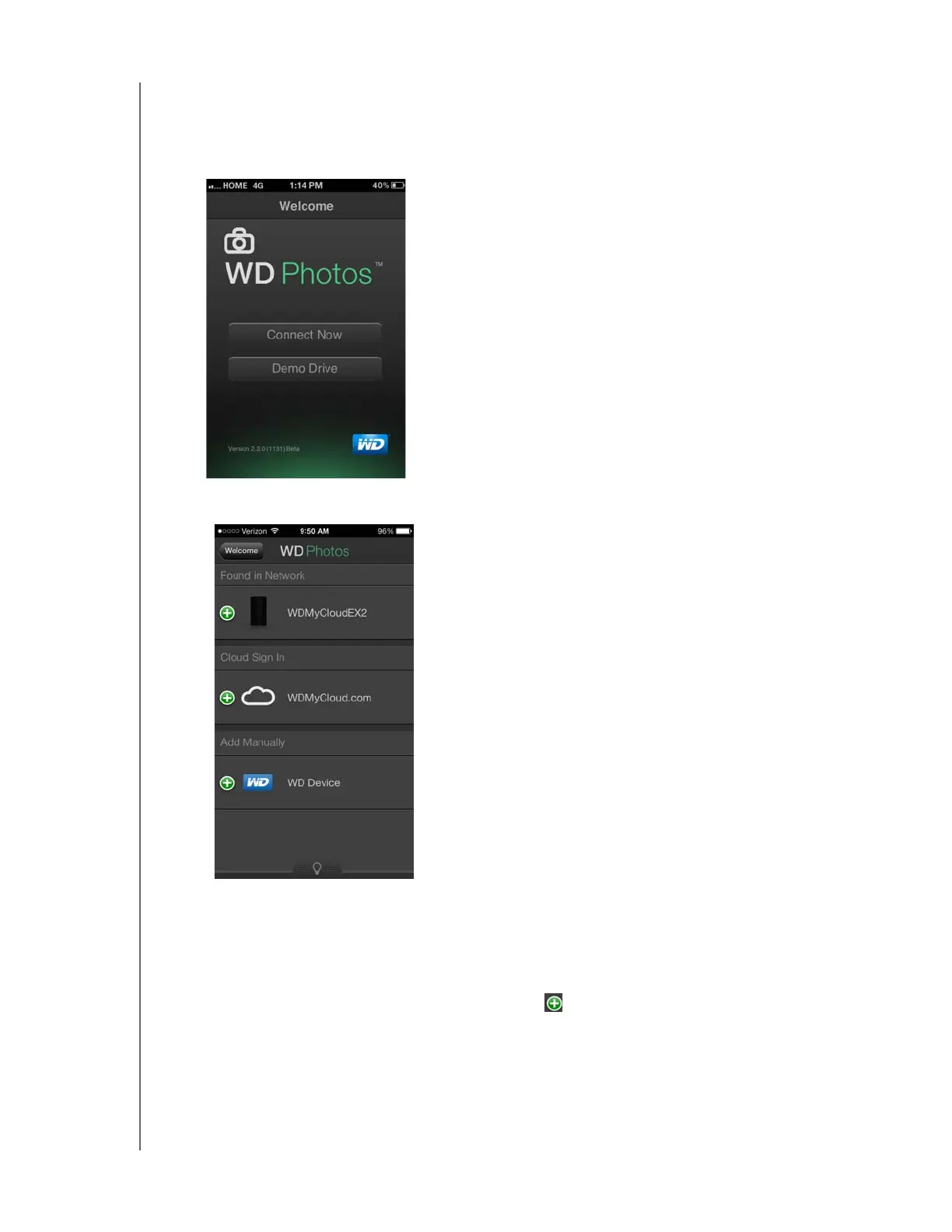 2. Launch WD Photos on your mobile device to display the WD Photos page.