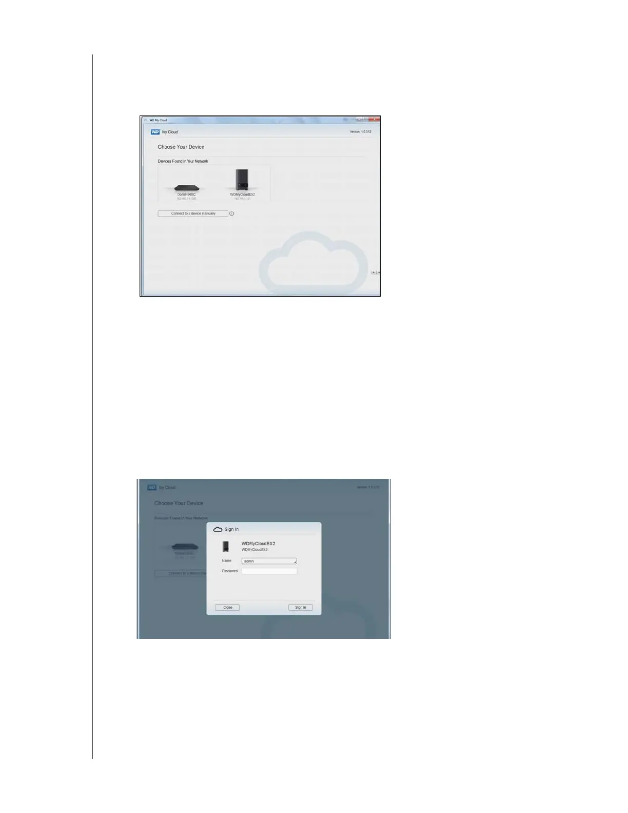 If requested, enter your WD My Cloud EX2 device Name and Password.
