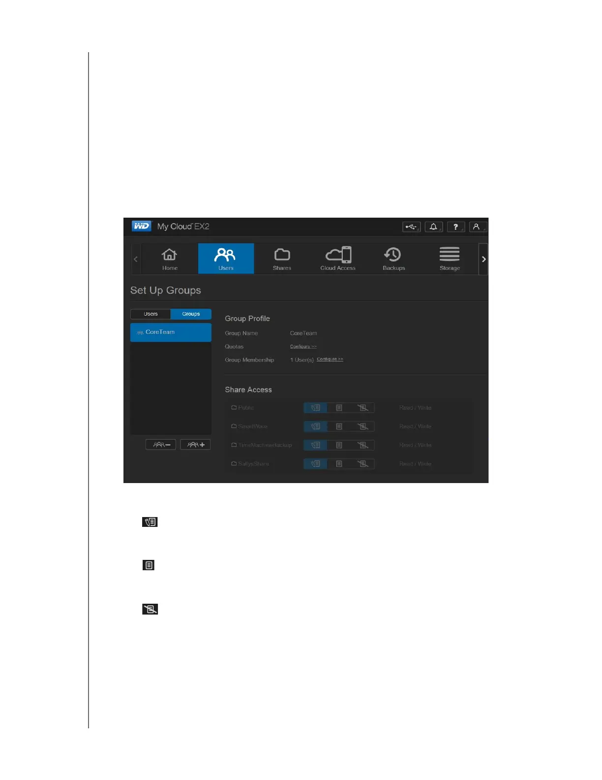 Once a group account is created, you can assign access to the various shares on your