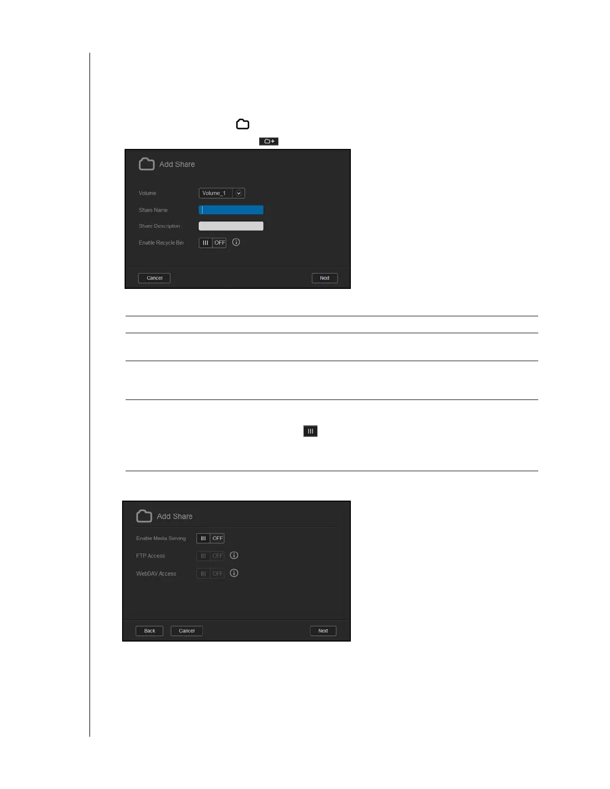 Share Name Assign a name to the share. (Names must be case sensitive, and