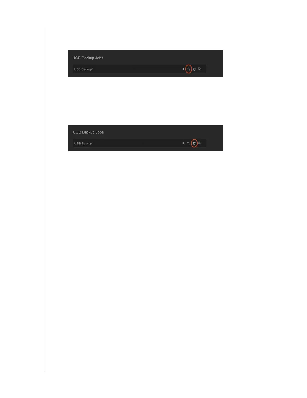 1. On the USB Backups screen, under USB Backup Jobs, click the Delete Job button