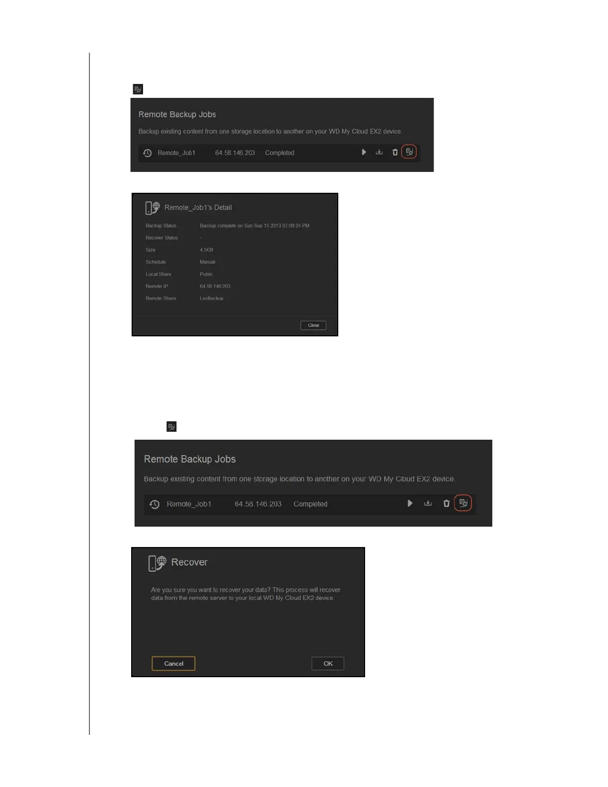 1. On the Remote Backup screen, under Remote Backup Jobs, click the Recover