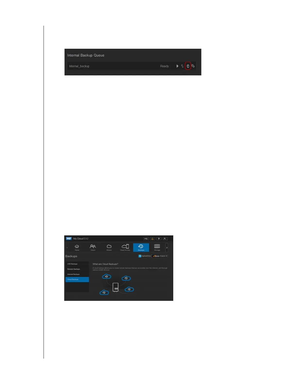1. On the Internal Backups screen, under Internal Backup Queue, click the Delete