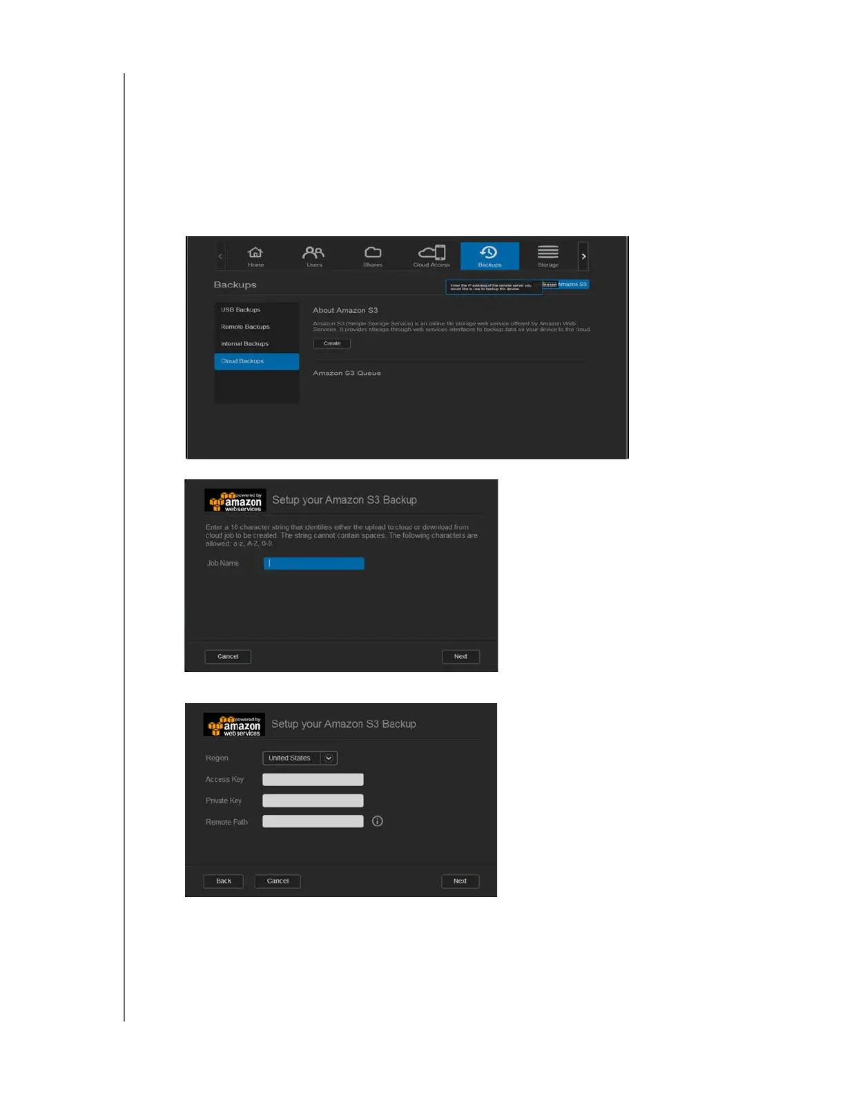Once your Amazon S3 account is set up, use the following steps to create a cloud backup.