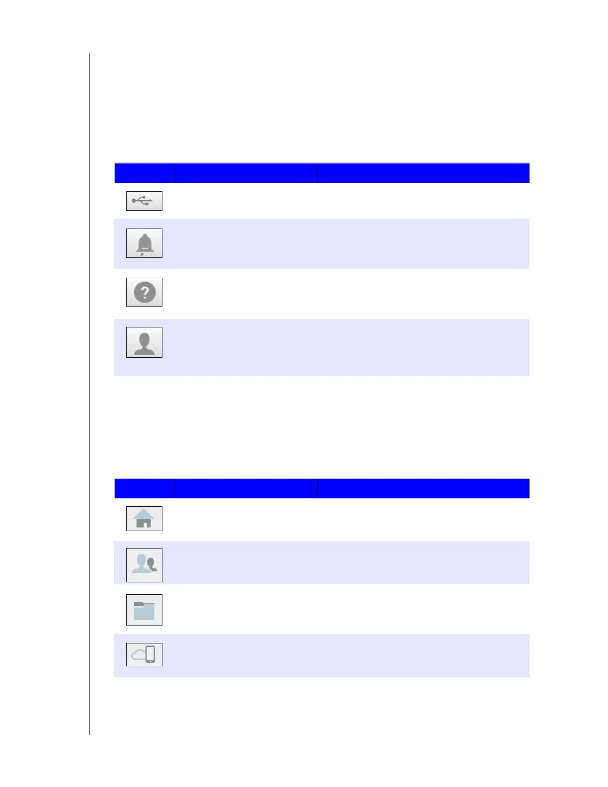 The Navigation Icons provide access to the various features and settings of your My Cloud device.