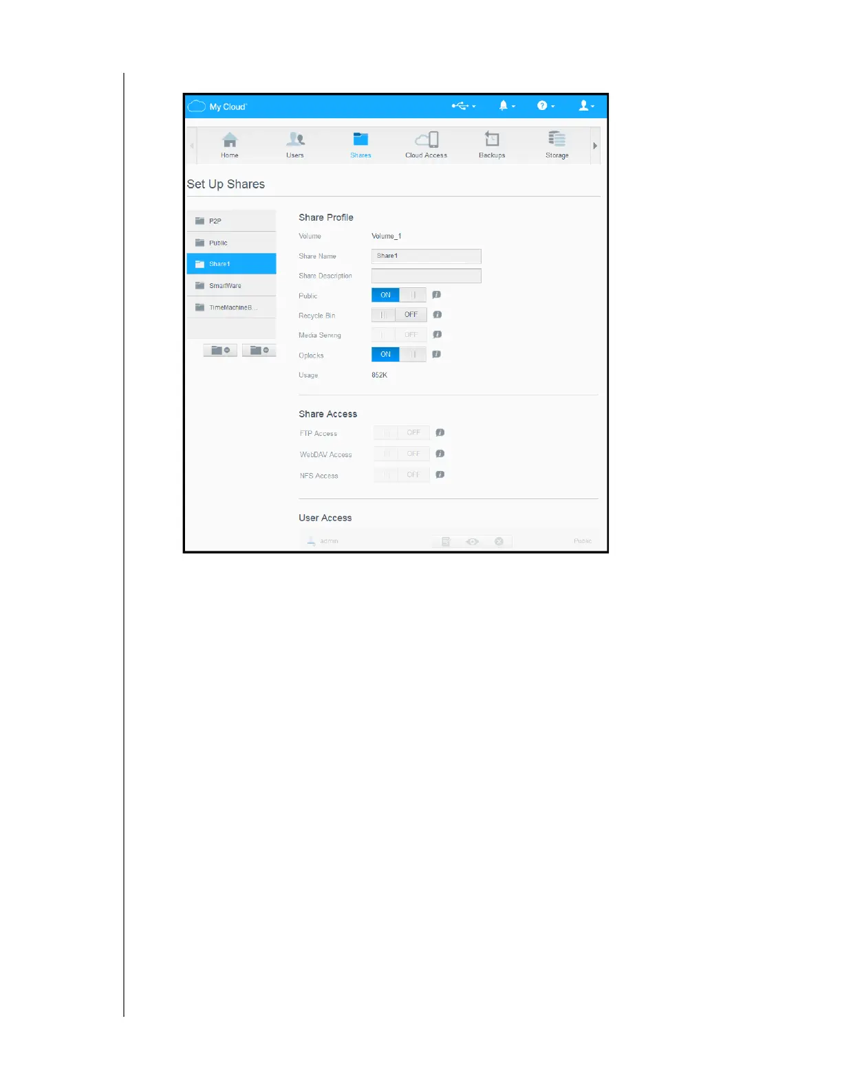 You c an c rea te a sh are and de sign ate it as p ubli c or private. For example, if the share contains