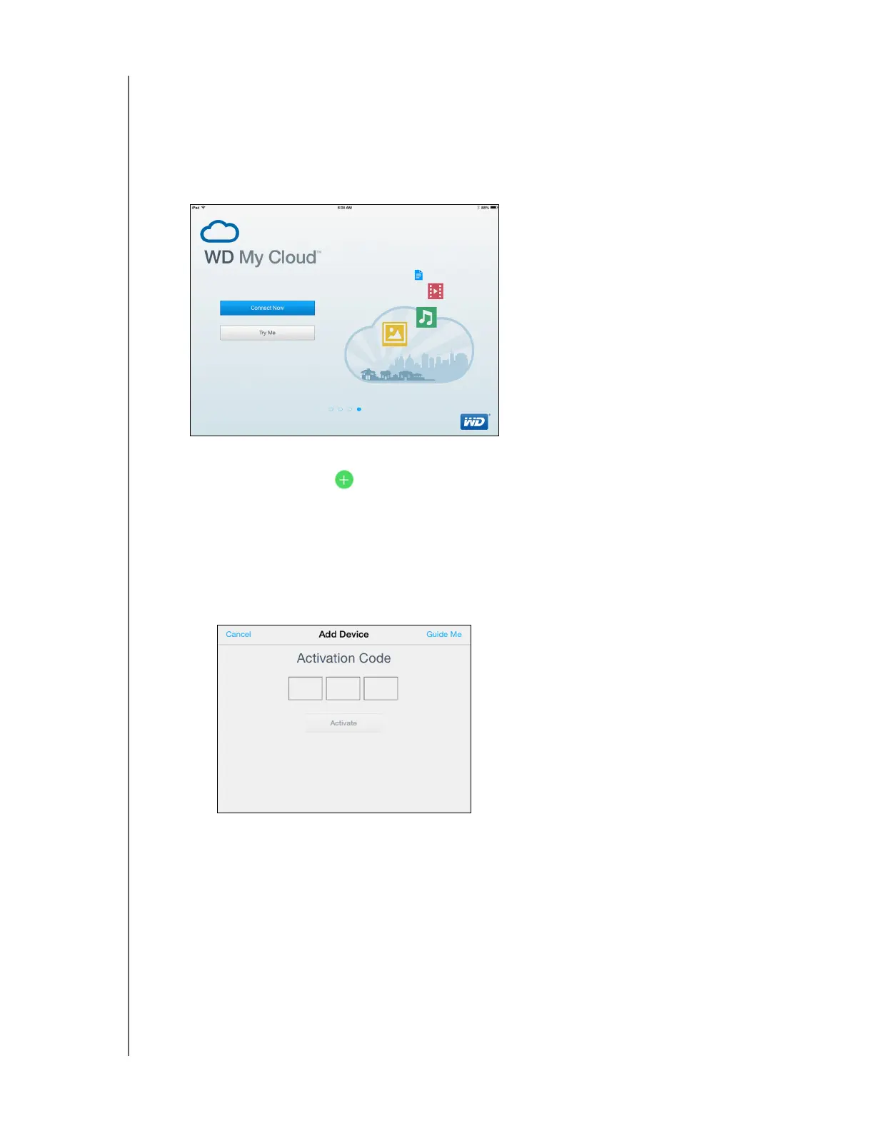 - Enter the activation code generated on you My Cloud and tap Activate. (For information
