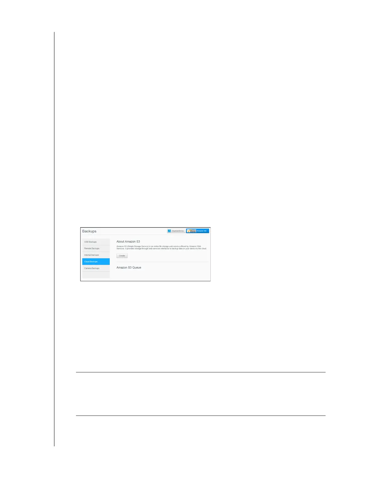 • Upload: Backs up your My Cloud data to your Amazon S3