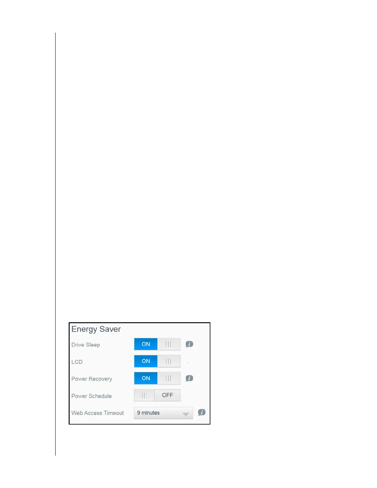 The Energy Saver fields allow you to reduce the energy required to run your My Cloud device.