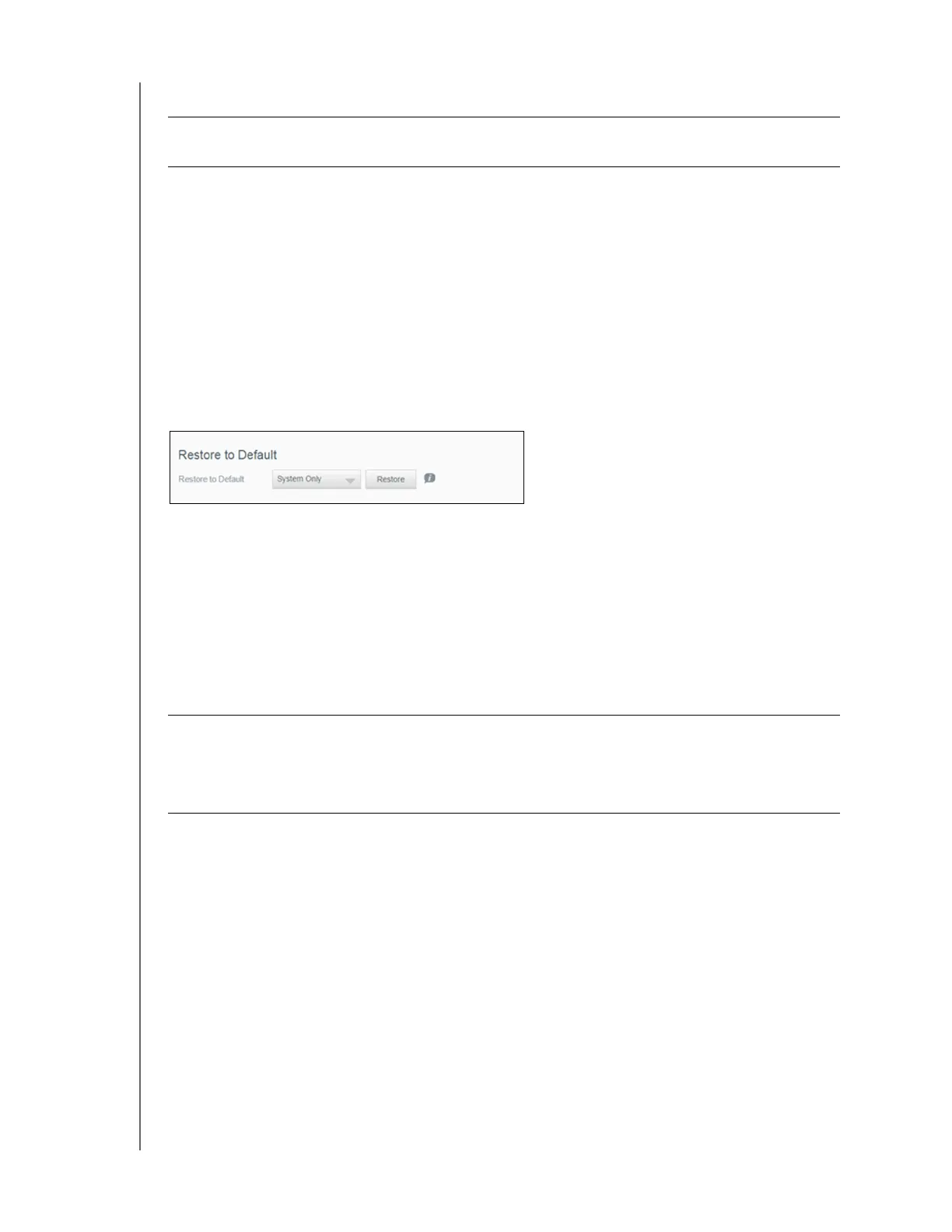 The Restore to Default area allows the Administrator to perform a restore on the My Cloud device.