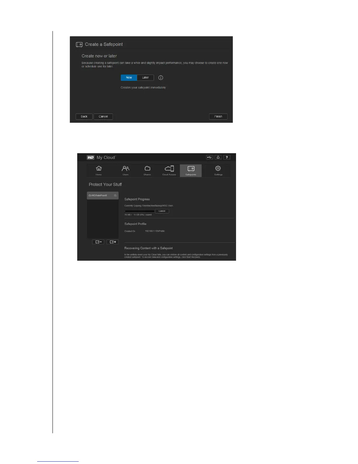 Create Now: To create a safepoint on the share immediately, click Now, and then