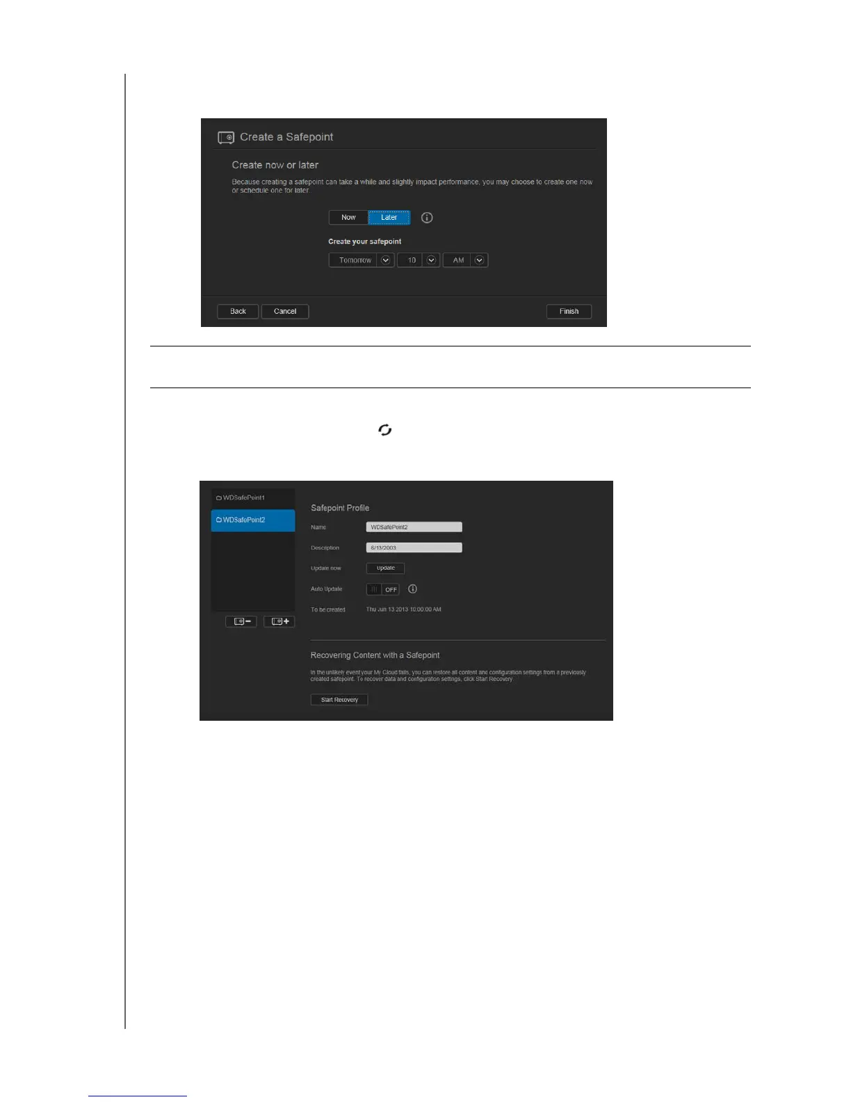 Create Later: If you want to schedule the creation of the safepoint, click Later and