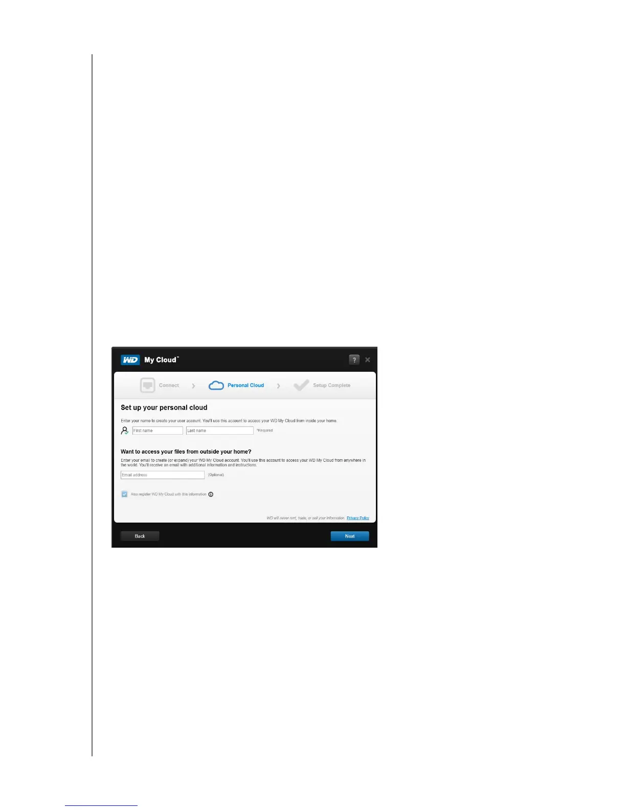 2. On the Set up your personal cloud screen, select the Also register WD My Cloud with