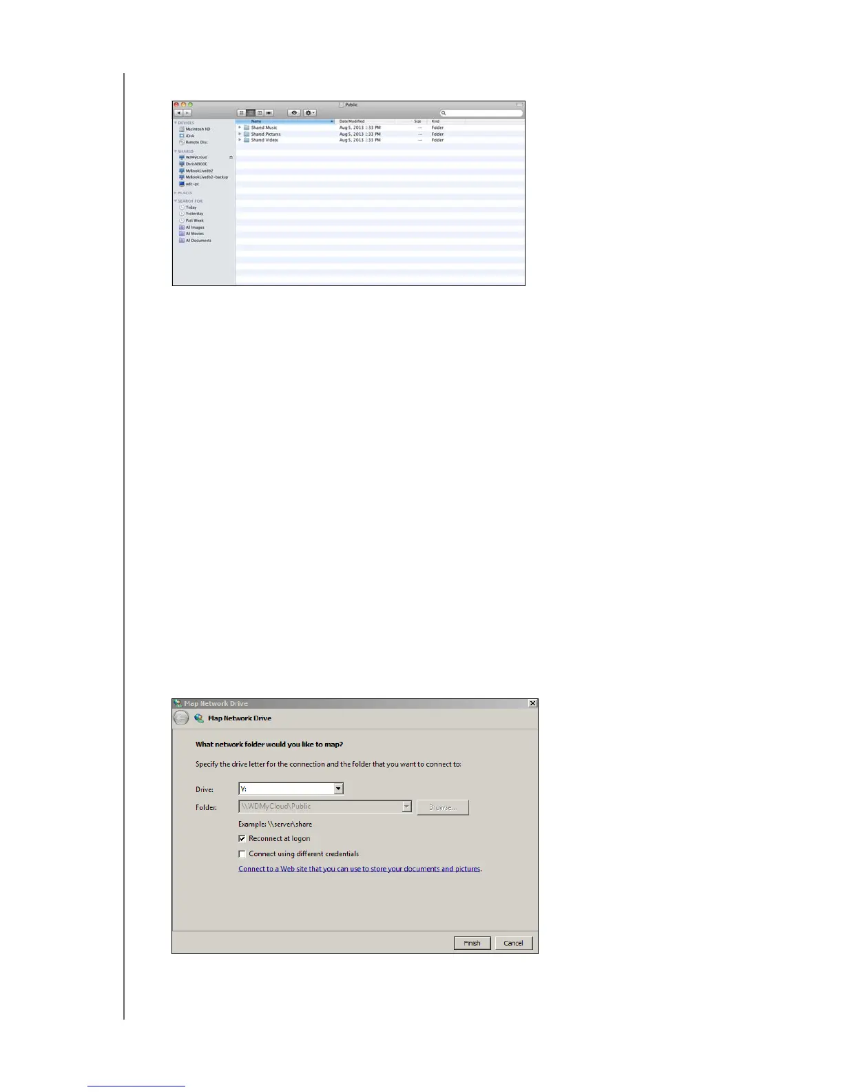 User” on page 53). For a public share, if prompted for a user name and password, select