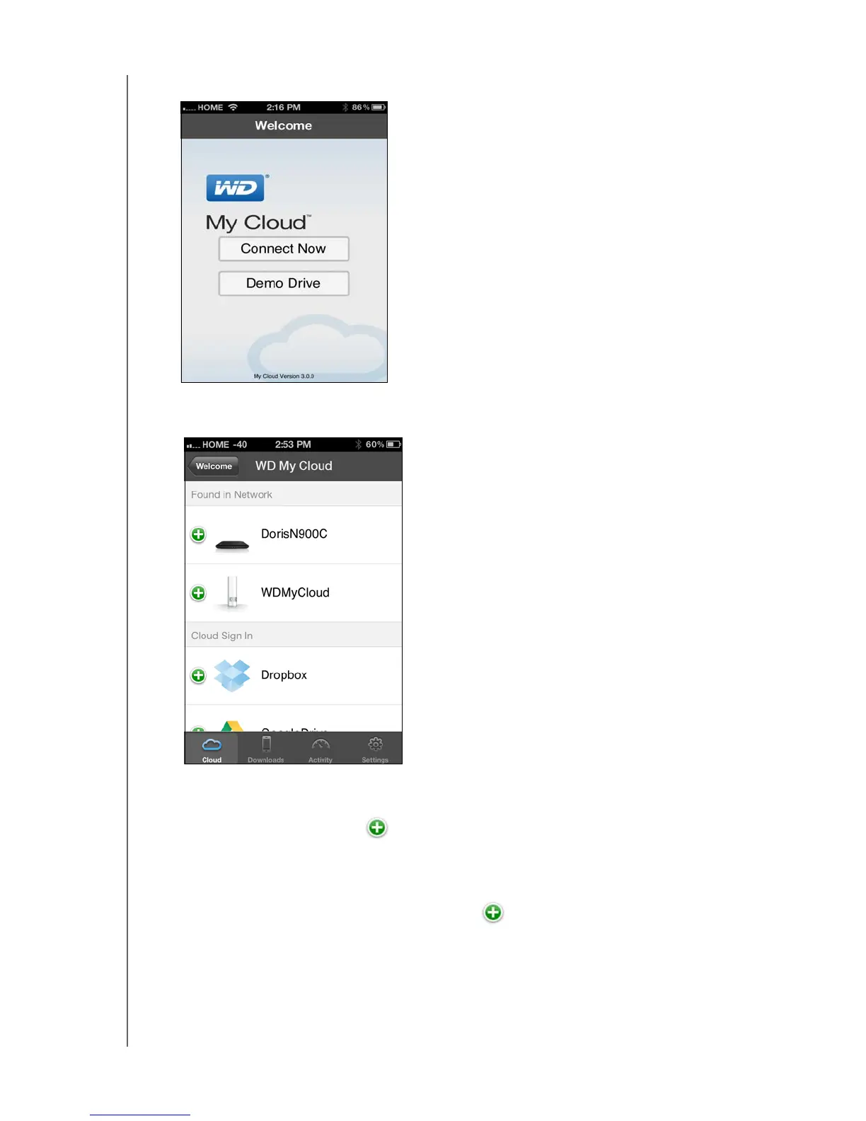 a. In the Add Manually section, tap the to the left of WDMyCloud.