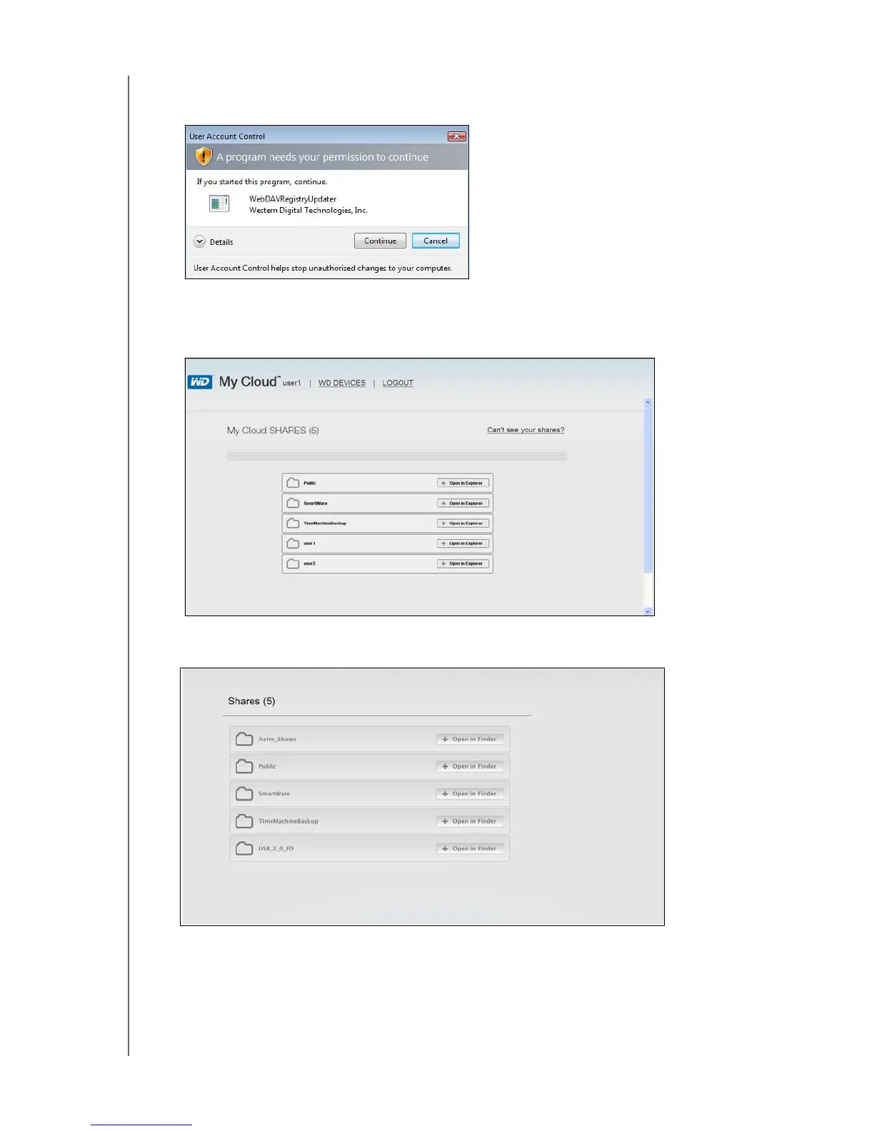 6. In Windows, click the + Open in Explorer button next to the share you want to access.
