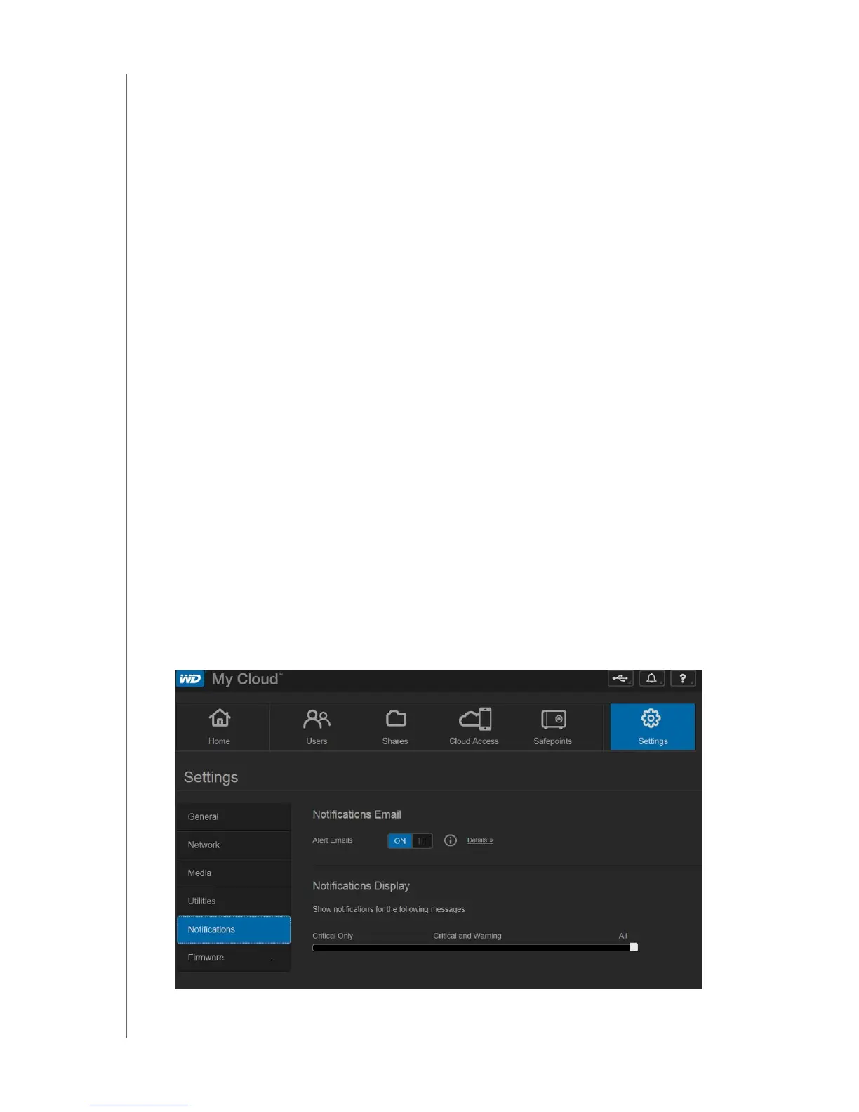 The WD My Cloud device provides notifications about various events, including whether a