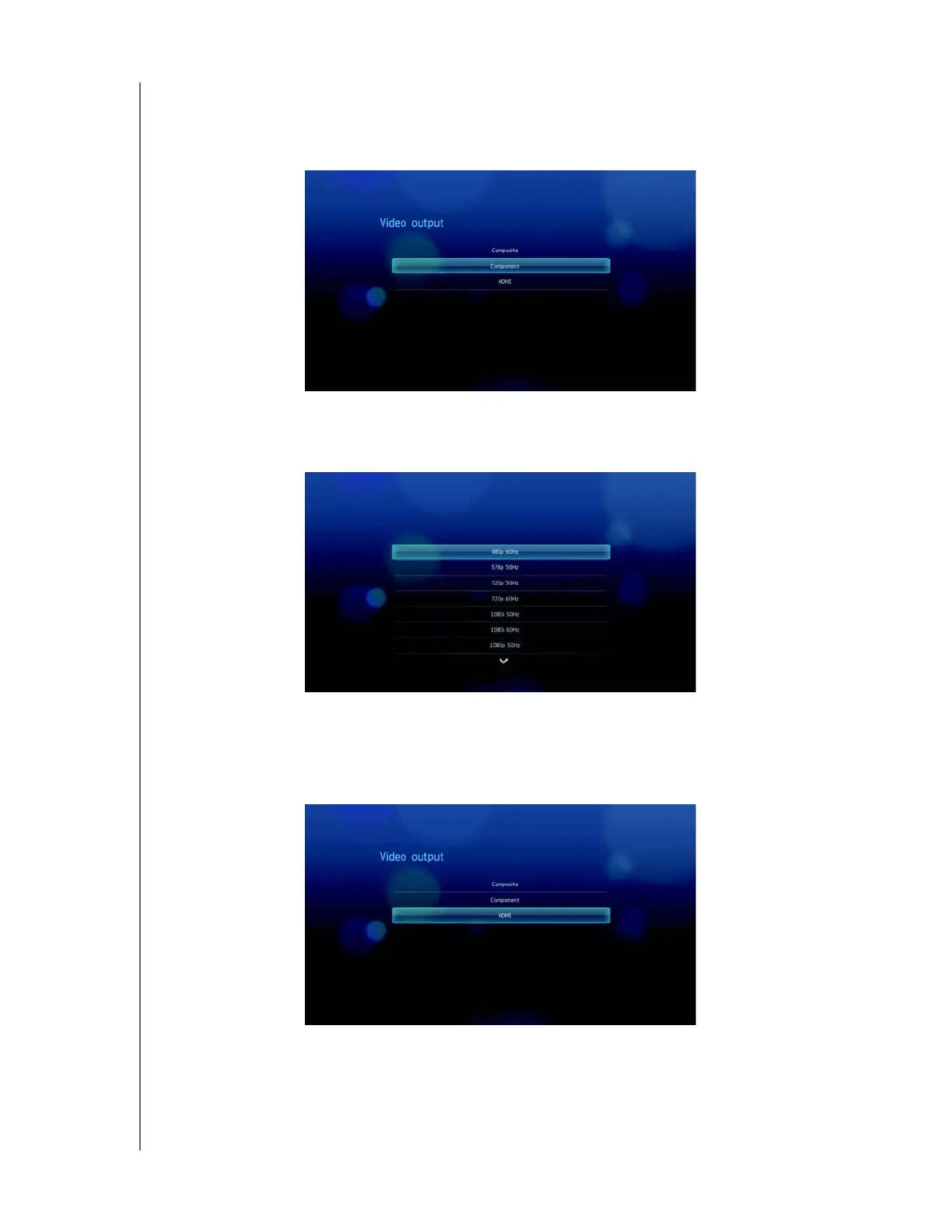 media player, select Component in the Video output screen.