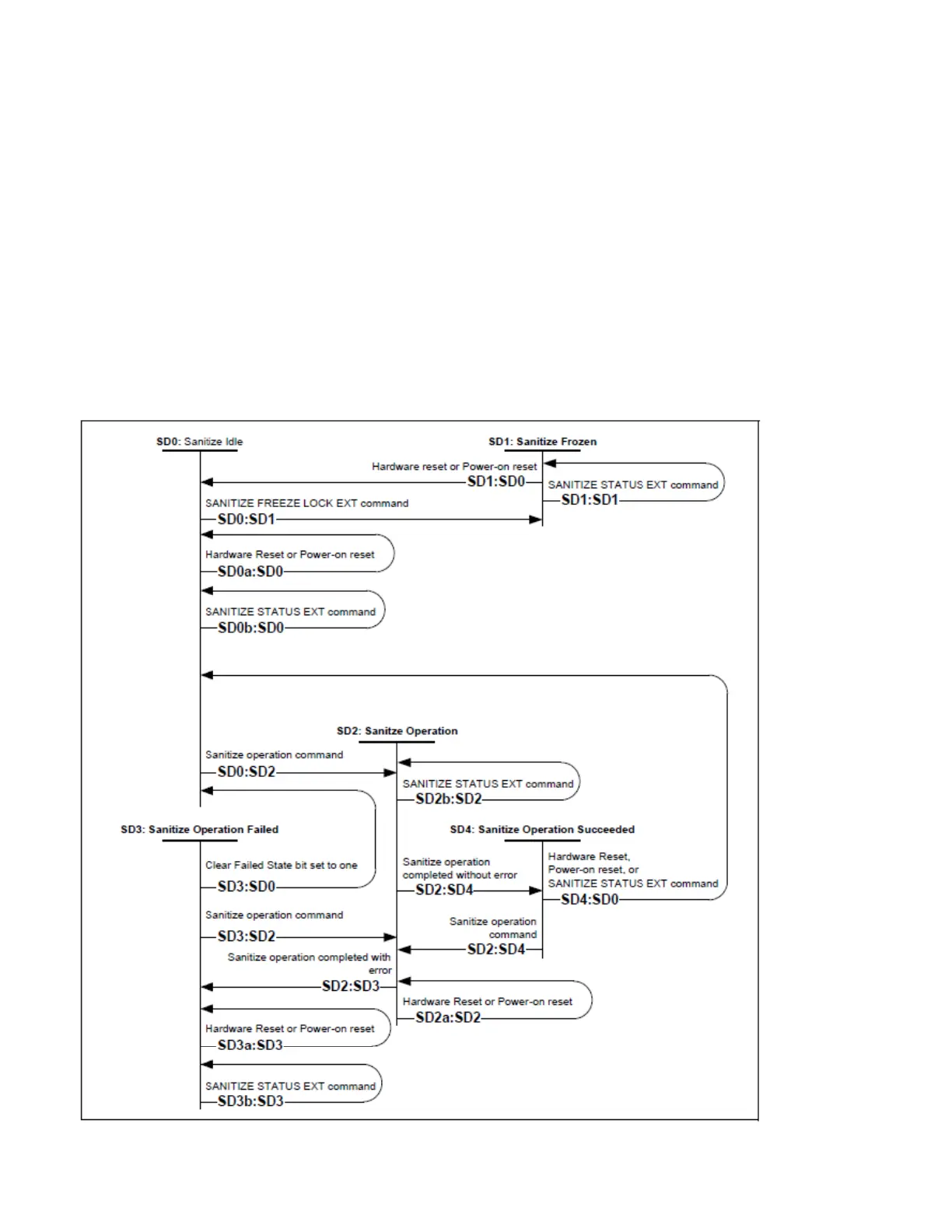 Transition SD0:SD2: If the device successfully processes a supported sanitize operation command, then the device