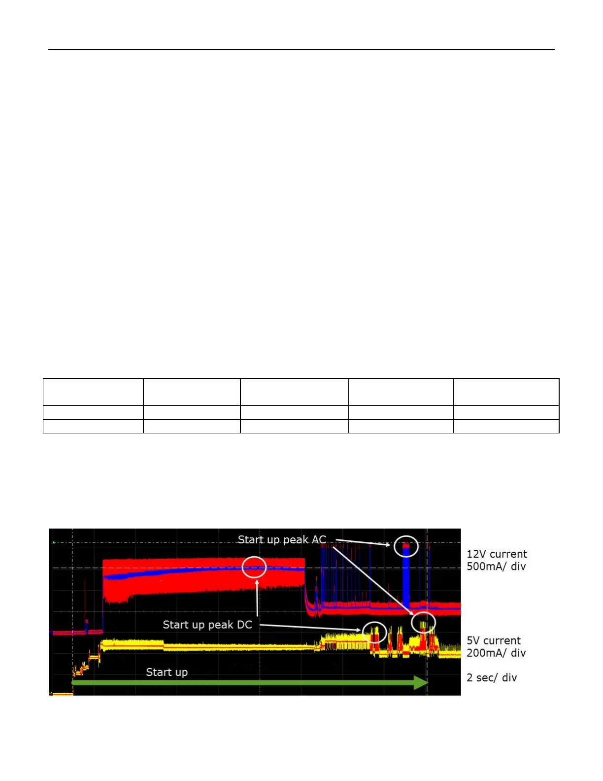 Start up peak AC and DC on 5V and 12V