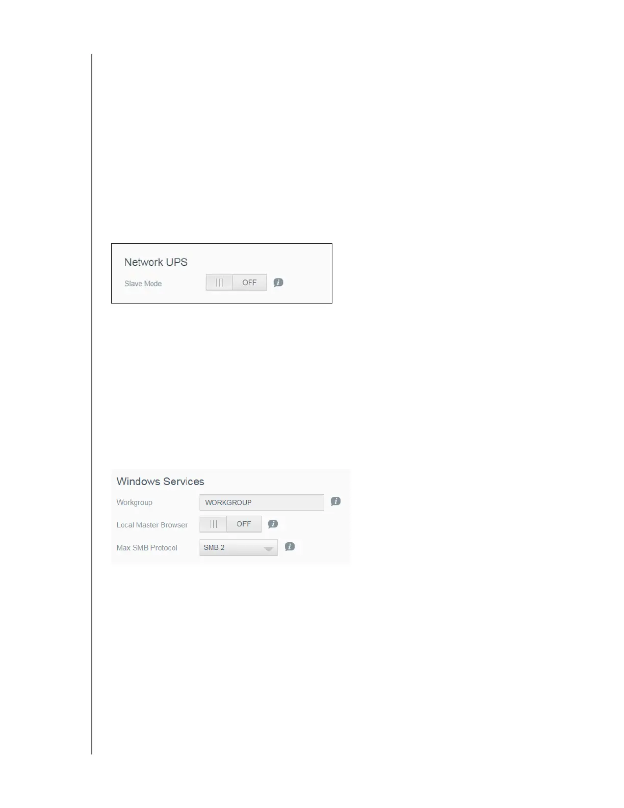 The Windows Services section of the Network screen allows you to configure Window