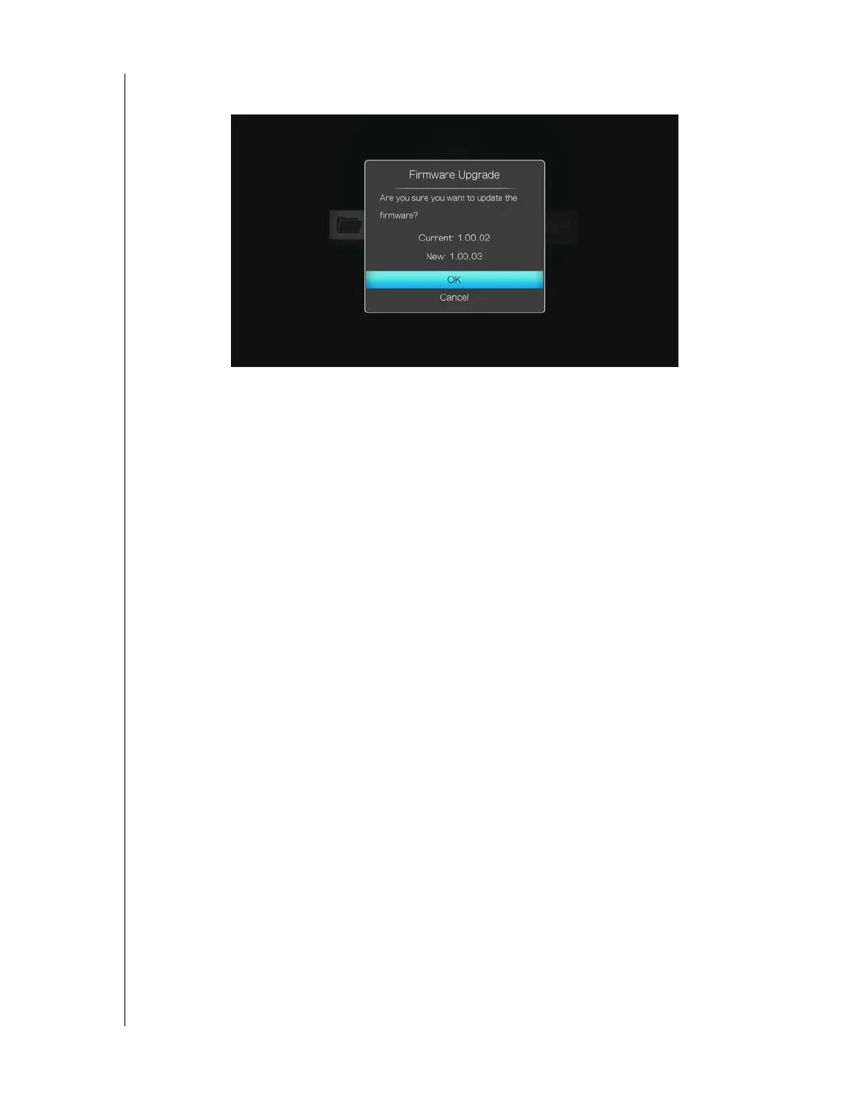 7. The firmware upgrade screen displays. Select OK, then press ENTER. This