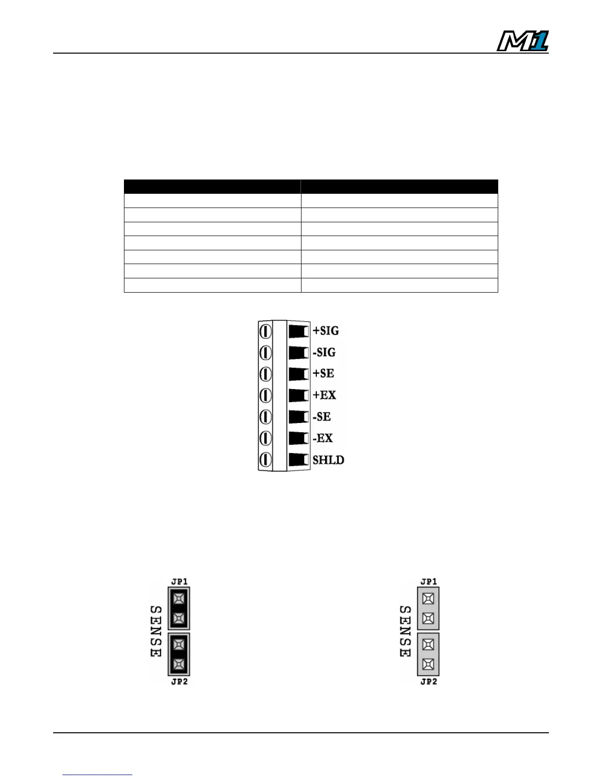 The M1 accommodates 4 or 6 wire load cells. When using 4 wire load cells (No