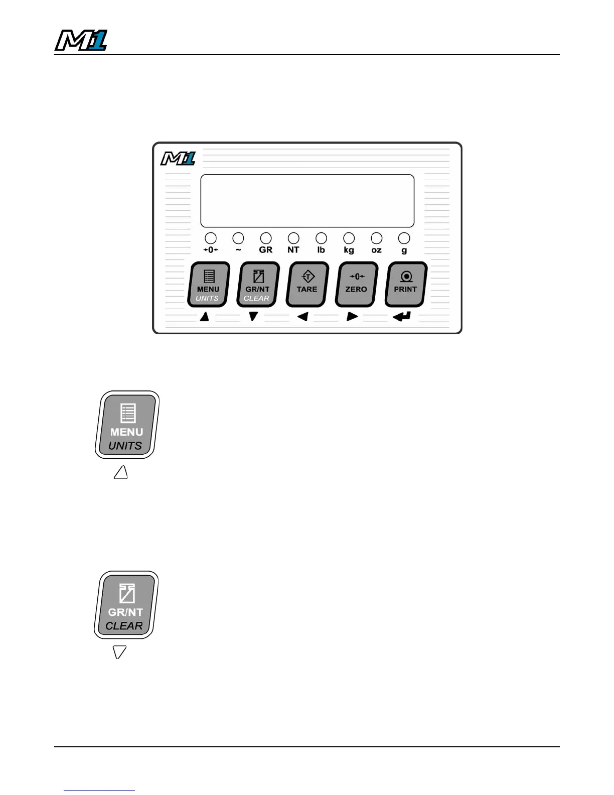 The M1 indicator utilizes 5 keys for operator interfacing. To maximize indicator