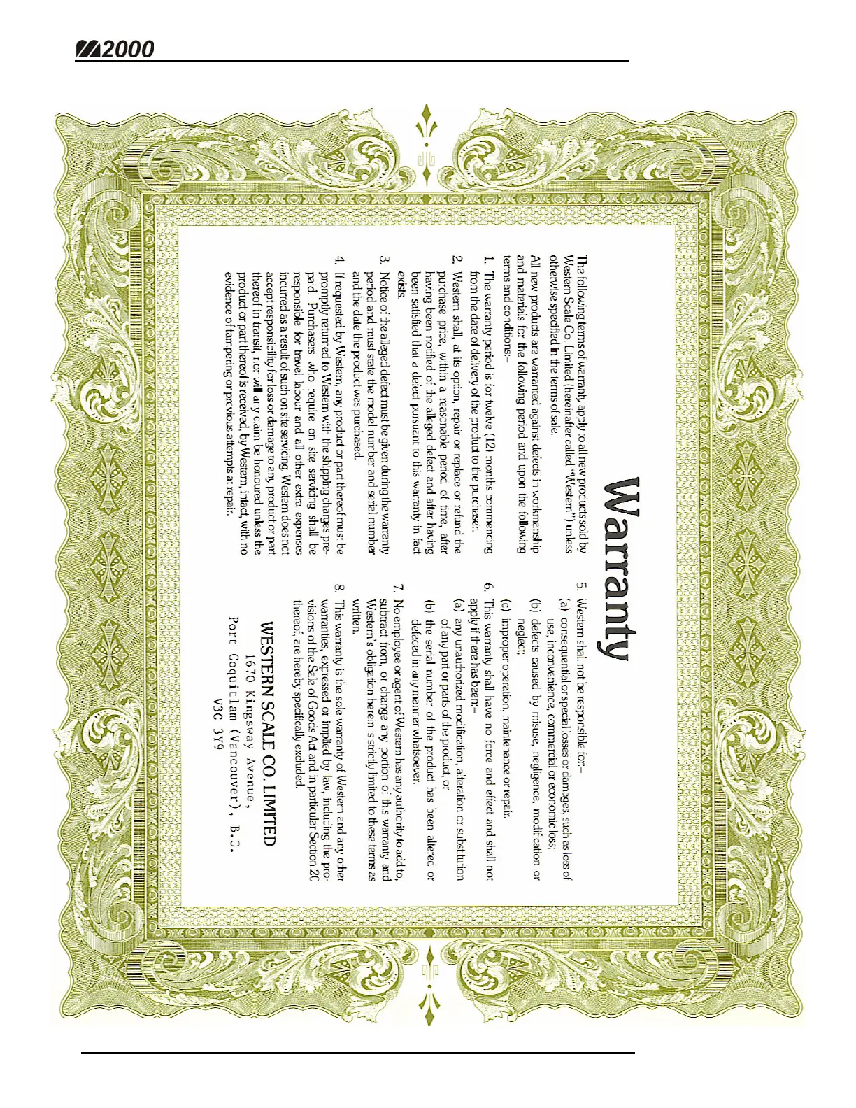 Western Scale M2000 - Appendix E - Warranty