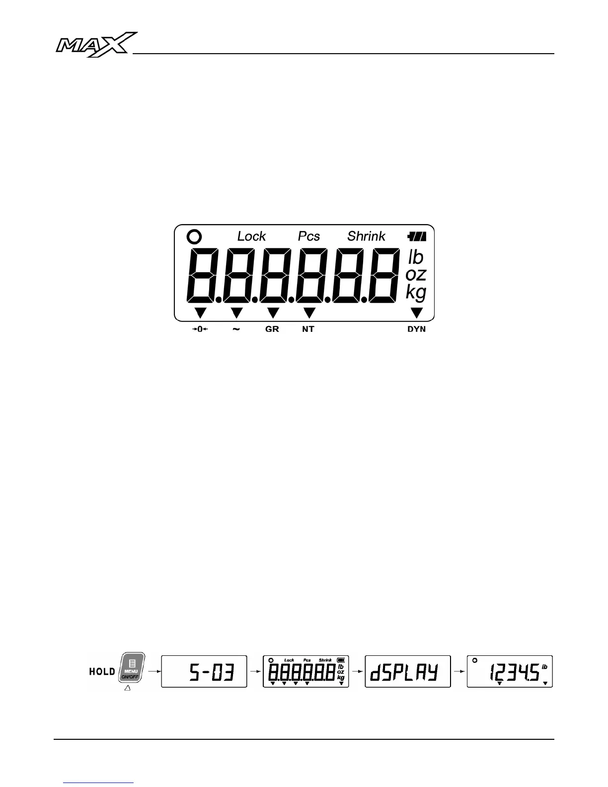 Remote Display Mode, the MAX displays the connected indicator’s weight and