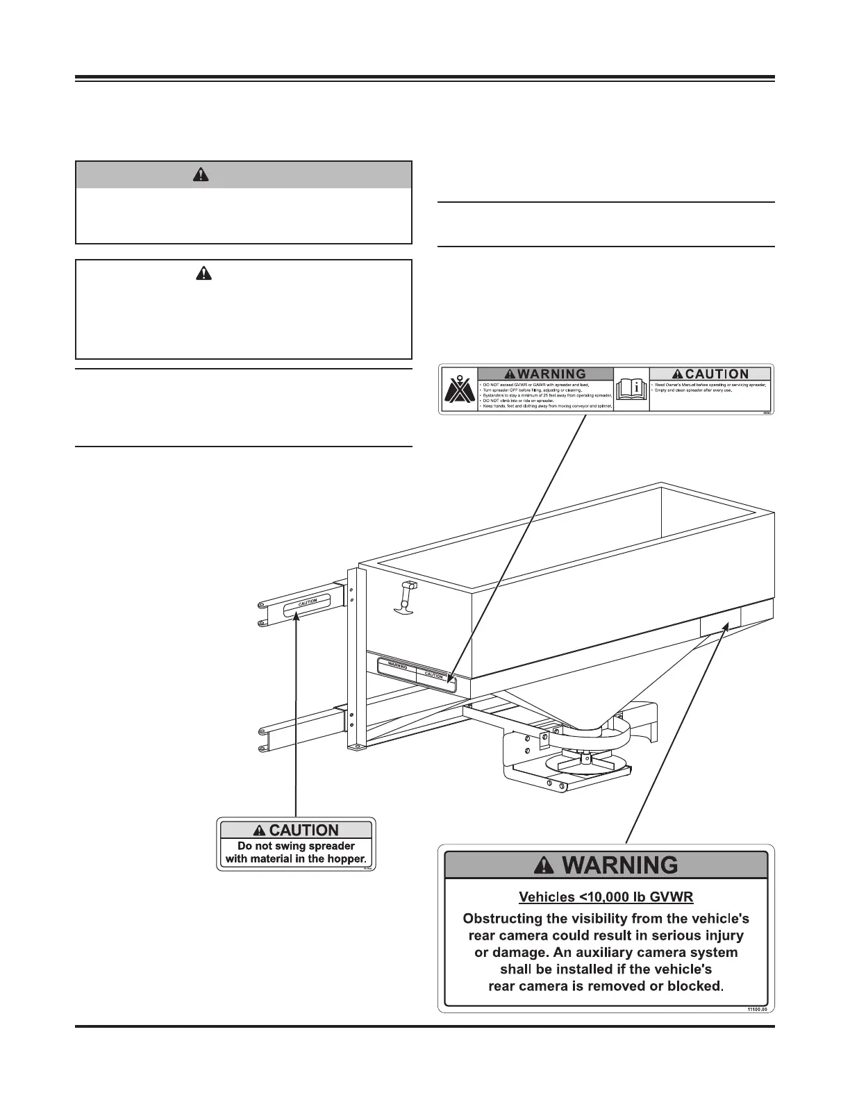 warning and caution labels on the spreader.
