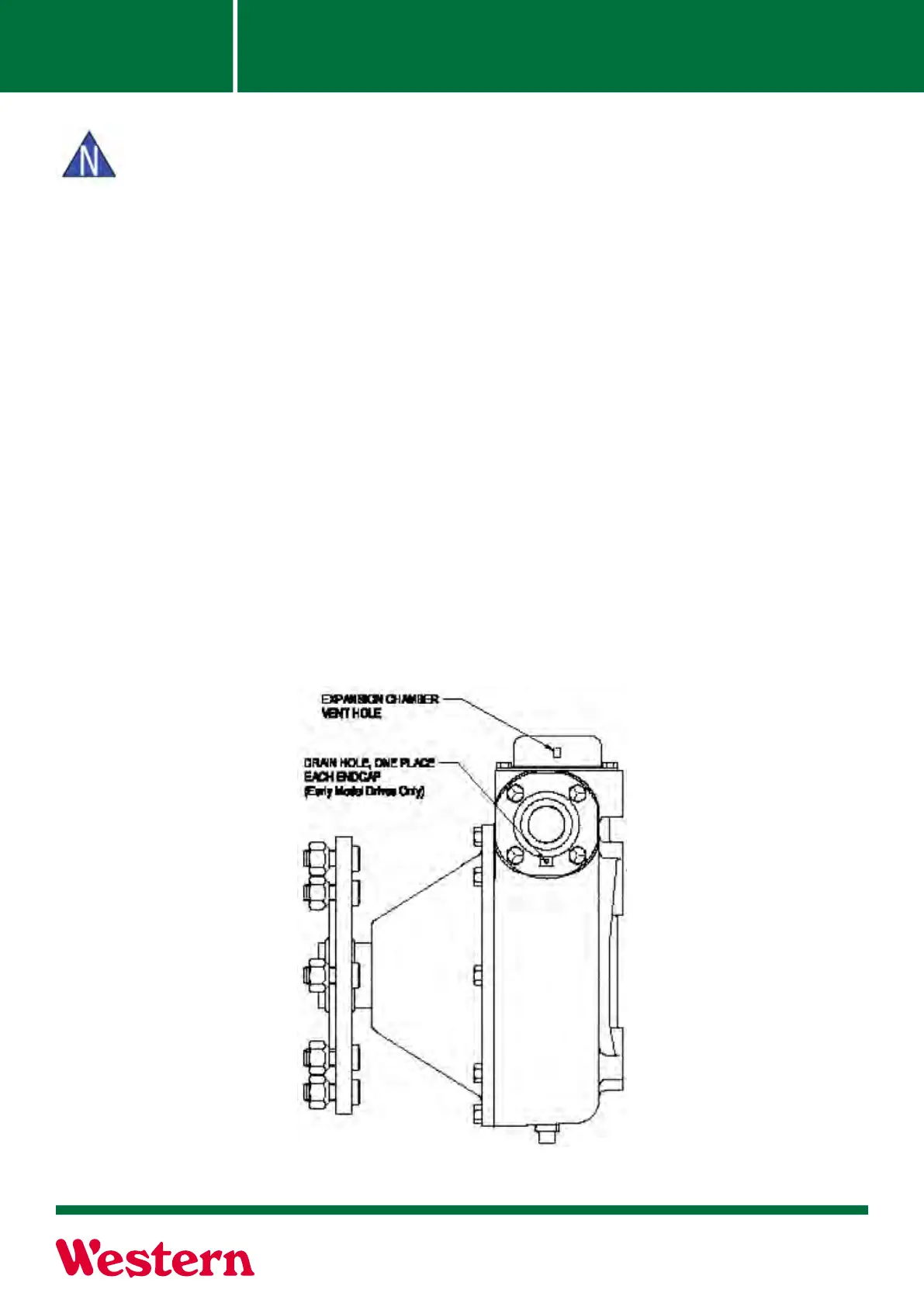 3. The seal drain hole located on both input caps must be kept clear of dirt. Clear the hole with