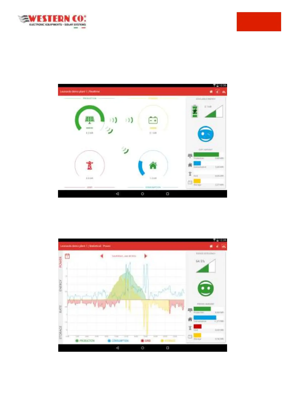 while in the Historical Data screen, you have the historical data of power, energy, performance indexes and specific