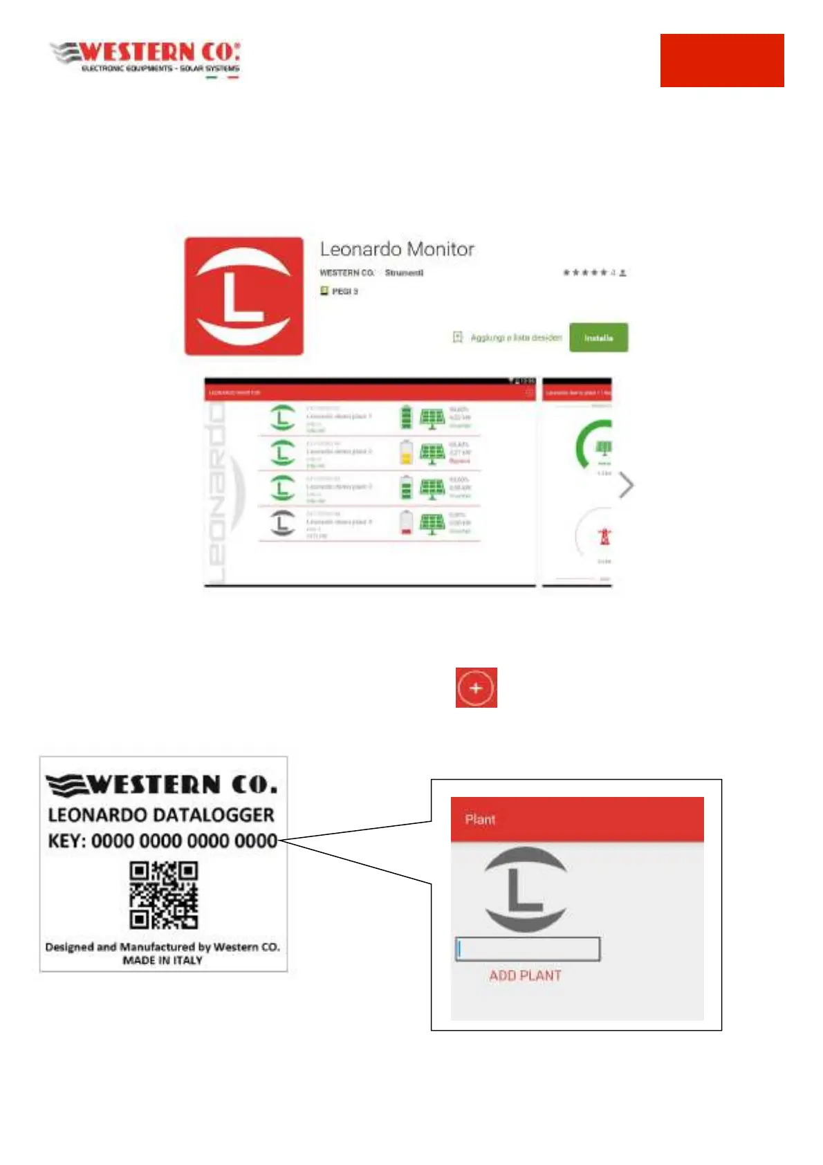 l'applicazione ed aggiungere il proprio impianto attraverso il tasto assieme alla KEY di attivazione, formata da