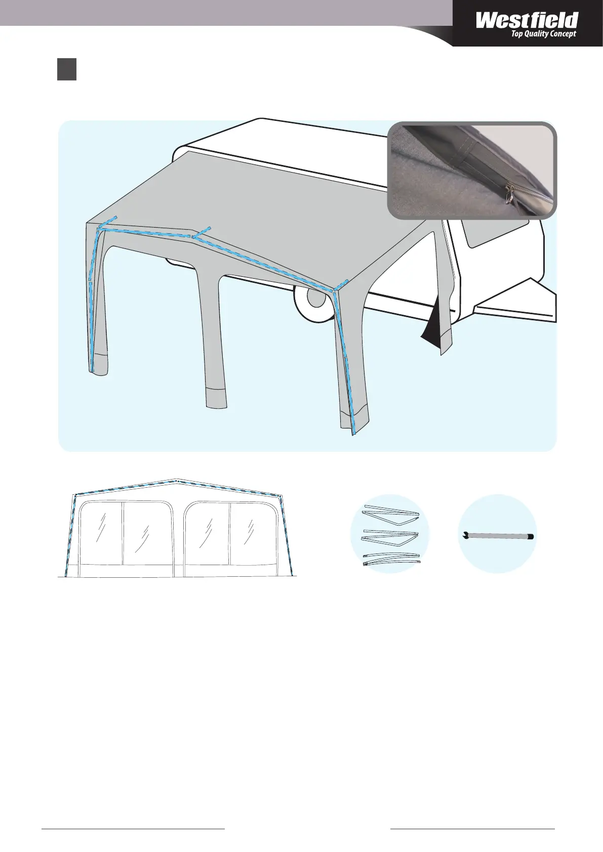 Put together the two site tubes and connect these to the roof tube already slided in.