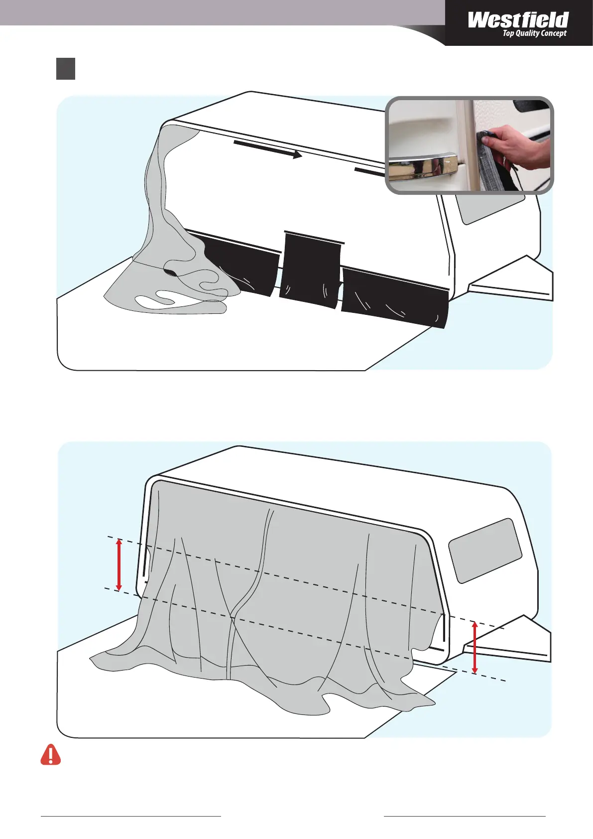For an easy sliding the awning into the caravanrail we advise to take out all side and front elements. Slide the aw-